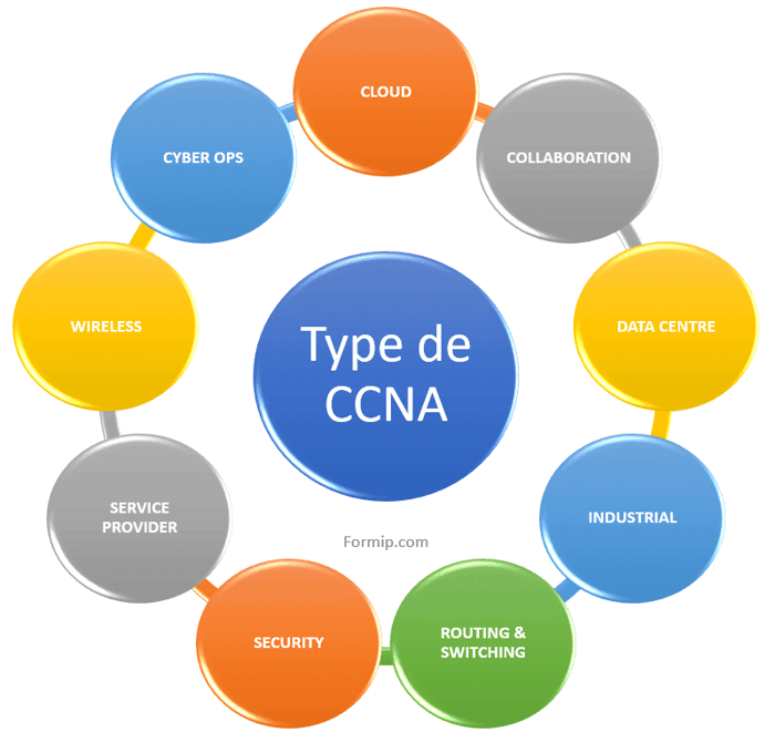 Le programme CCNA comprend 9 spécialisations : Routing & Switching, Security, Cloud, Data Center, Collaboration, Wireless, Cyber Ops, Industrial et Service Provider.