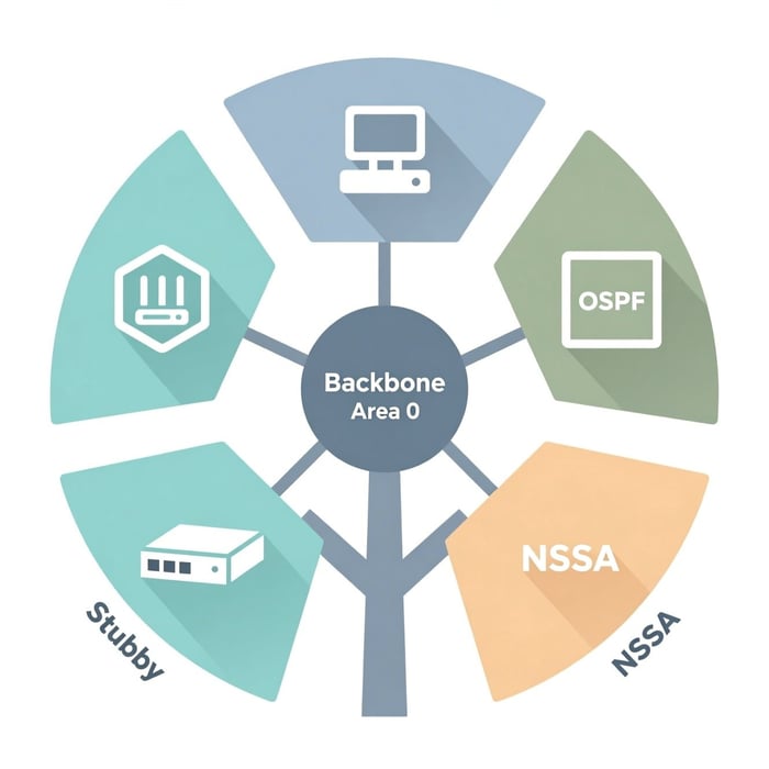 Les LSA de types 3, 4 et 5 peuvent s’échanger entre les zones standards - Stubby Area : les LSA de types 4 et 5 ne sont pas envoyés dans la zone. À la place, une route par défaut est utilisée.