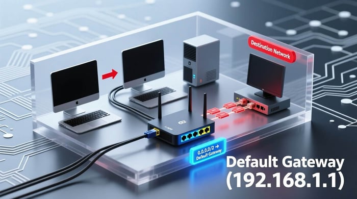 La passerelle par défaut (default gateway) est indispensable pour acheminer les paquets hors du réseau local. Lorsque la portion réseau de l'adresse de destination diffère de celle de l'hôte émetteur, le paquet doit être routé vers un autre réseau. Cette opération s'effectue en envoyant le paquet à la passerelle par défaut.