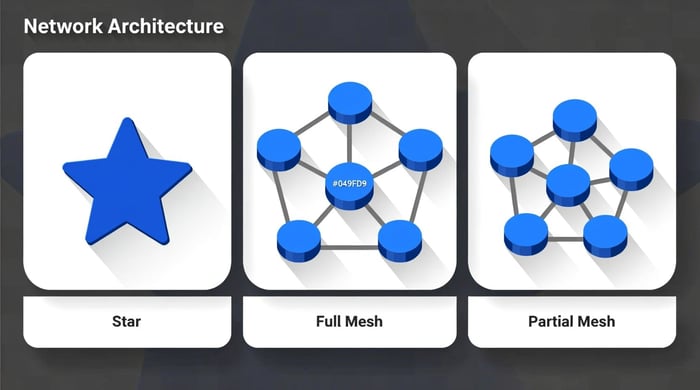 Full mesh : chaque routeur est connecté à tous les autres, offre une haute redondance mais coûte cher et complexe.