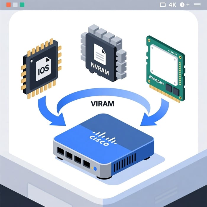 - NVRAM : Contiens le fichier de configuration du démarrage. C’est-à-dire la startup-config, et la valeur du registre de démarrage.