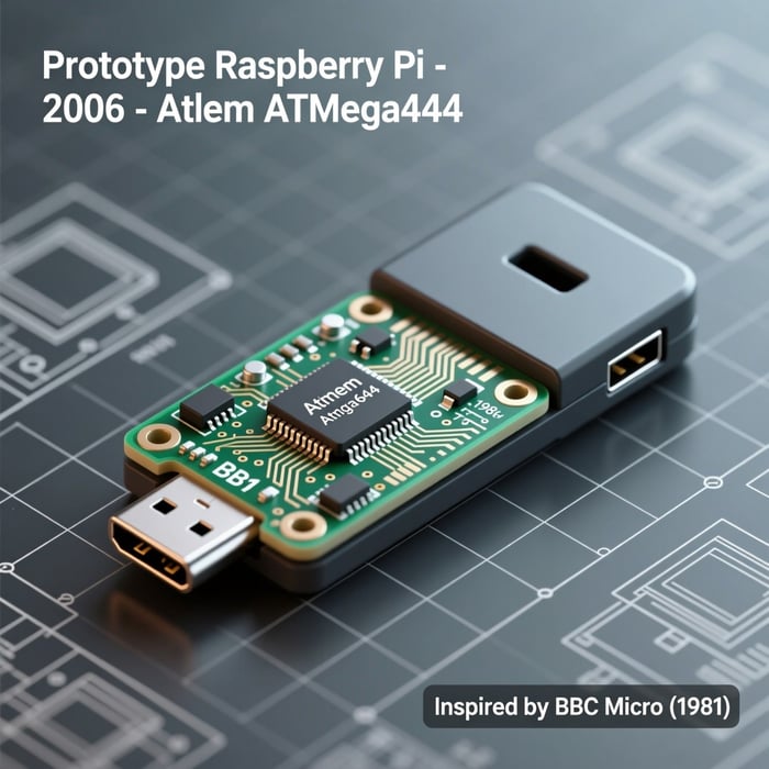 Les prototypes du Raspberry sont développés en 2006 sur des microcontrôleurs Atmel et Atmega 644. Le modèle est inspiré du BBC Micro d’Arcorn Computer qui est commercialisé en 1981 et est produit pour encourager la jeunesse à s’intéresser à la programmation informatique.