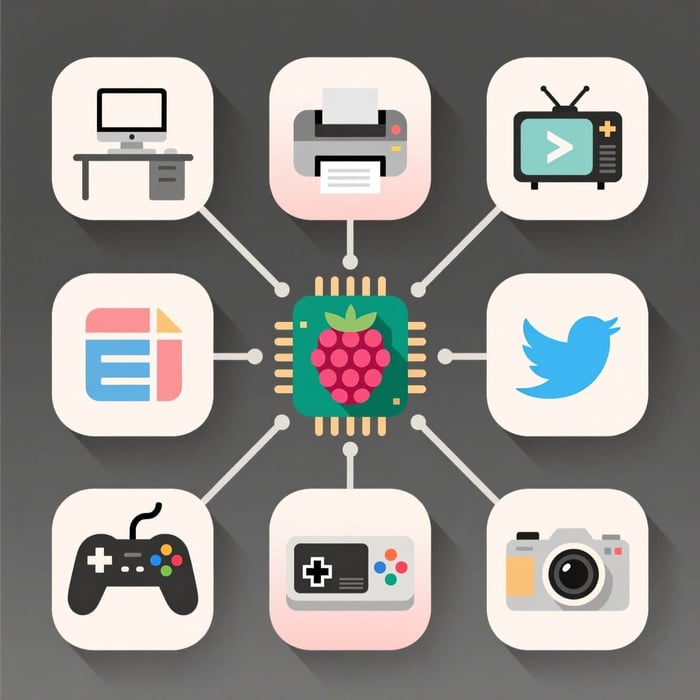 Raspberry est conçu initialement pour encourager la formation à l’informatique dans les écoles. Raspberry peut être utilisé comme outil multimédia, serveur ou contrôleur de jeux dans Minecraft.