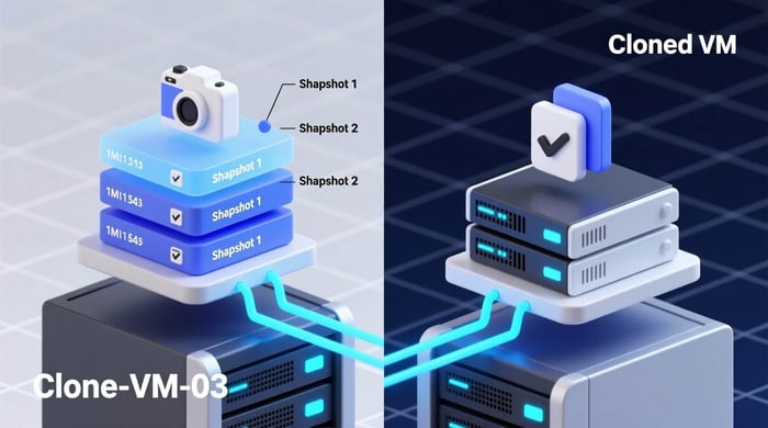 Le snapshot de machines virtuelles vous permet de figer l'état d'une VM à un instant donné. Cette image instantanée devient un point de restauration faisant office de sauvegarde VM. Au gré de vos besoins, que vous soyez en phase de test ou de déploiement, ces clichés sont vos meilleurs alliés pour une restauration VM rapide et sans erreur.